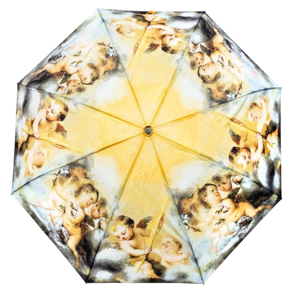 Lassen Sie sich begeistern von diesem Regenschirm mit seinem lieblichen Engelmotiv. Leuchtende, helle Farben lassen diesen Schirm erstrahlen. Sanftes gelb wechselt sich ab mit weiß, zartem hellblau und grau. Kleine Engel sitzen zwischen den Wolken und schmiegen sich aneinander. Dieses Motiv ist mit viel Liebe zum Detail gearbeitet - ein wahres Kunstwerk, welches verzaubert.