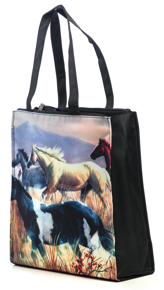 Lassen Sie sich bezaubern von den wild galoppierenden Pferden und Ihren wehenden Mähnen. Es ist fast so als könne man die donnernden Hufen hören, den Wind spüren und den Duft des Steppengrasses riechen. Pferdefans werden begeistert sein! Idealer Begleiter für jeden Tag. Ganz gleich ob beim Einkaufsbummel, beim Sport oder bei der Arbeit. Praktische Einkaufstasche und modisches Accessoire zugleich!